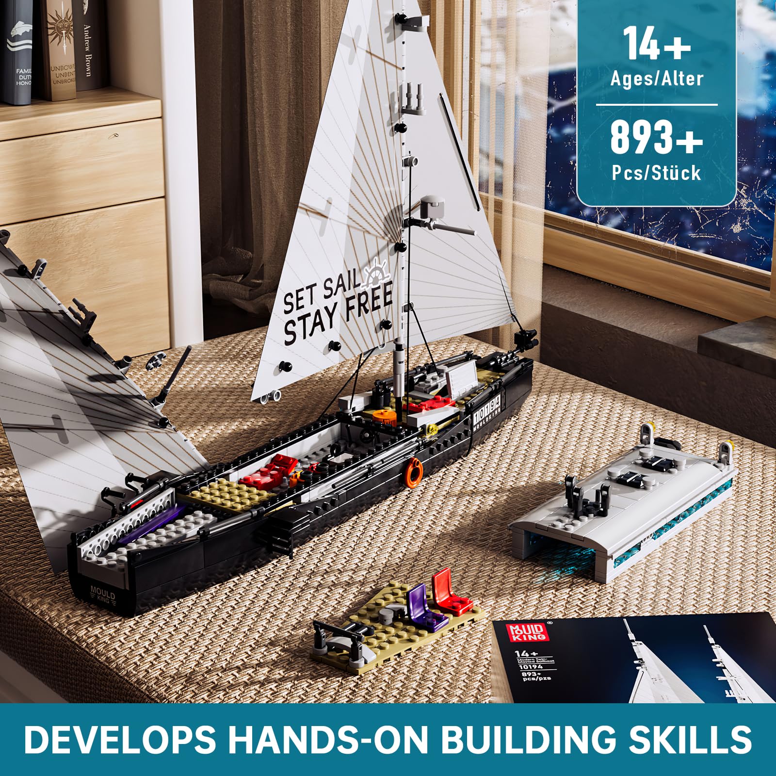 Sail into sophistication with the Mould King 10194 Modern Twin-Masted Sailboat, a beautifully detailed maritime display model inspired by contemporary yacht design. With elegant lines, realistic rigging, and premium construction, this set delivers both a satisfying build and a stunning final showcase piece.